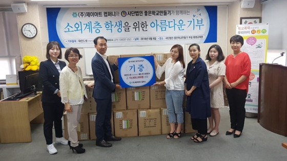¢ßÁ¦ÀÌ¾ÆÆ®ÄÄÆÛ´Ï(´ëÇ¥ ±èÀº¿µ)°¡ ¼Ò¿Ü°èÃþ ÇлýÀ» À§ÇØ ±³À° ¹°Ç°À» ±âºÎÇÏ¸ç µû¶æÇÑ ³ª´®À» ½ÇõÇß´Ù.